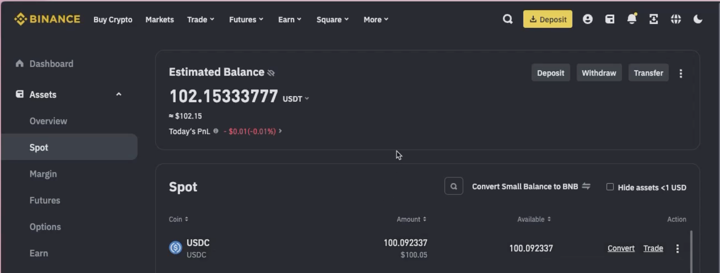 100 USDCfrom an Arkis Liquidity Pool.Withdraw that USDC to our linked Binance sub-account.