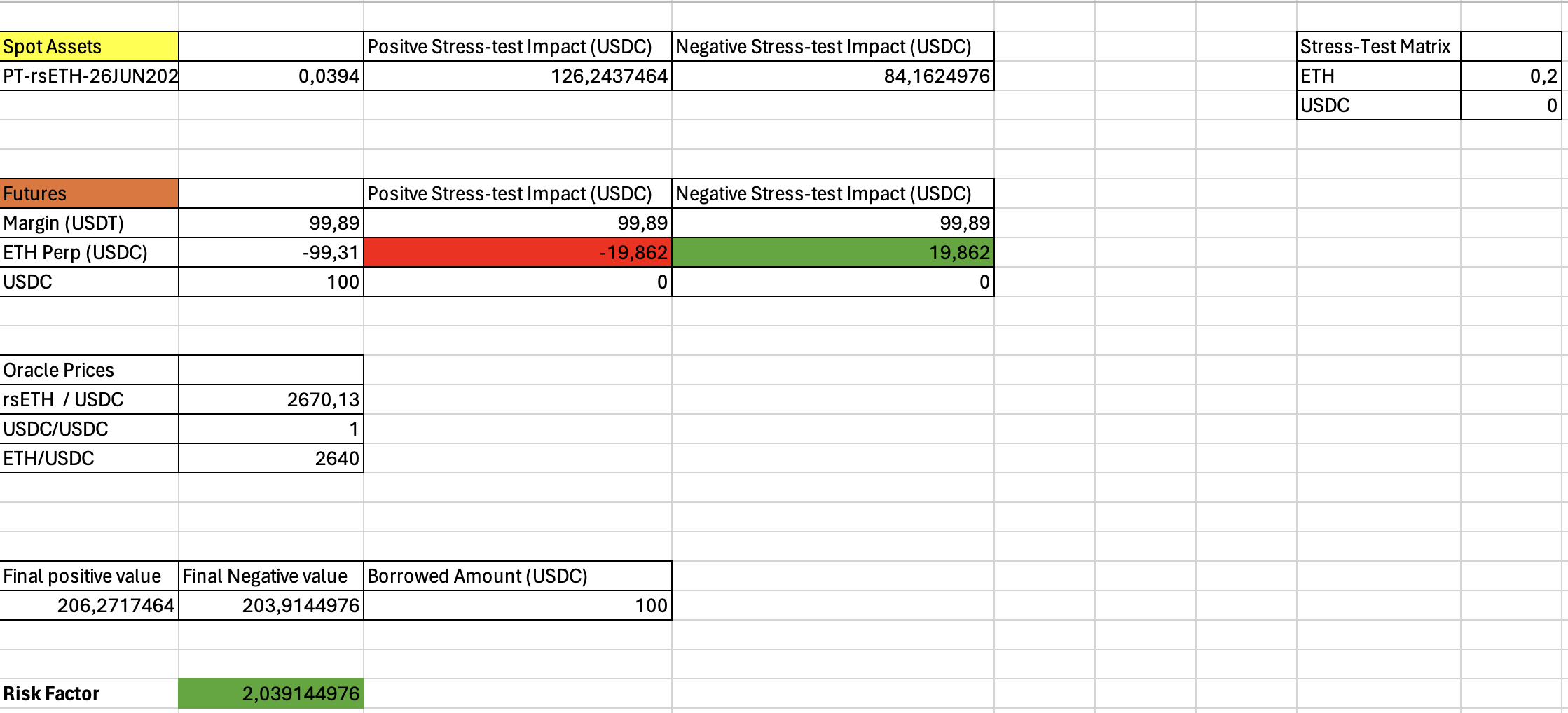 Total Stress-Tested Portfolio Value: 80 USDC + 100 USDC = 180 USDC