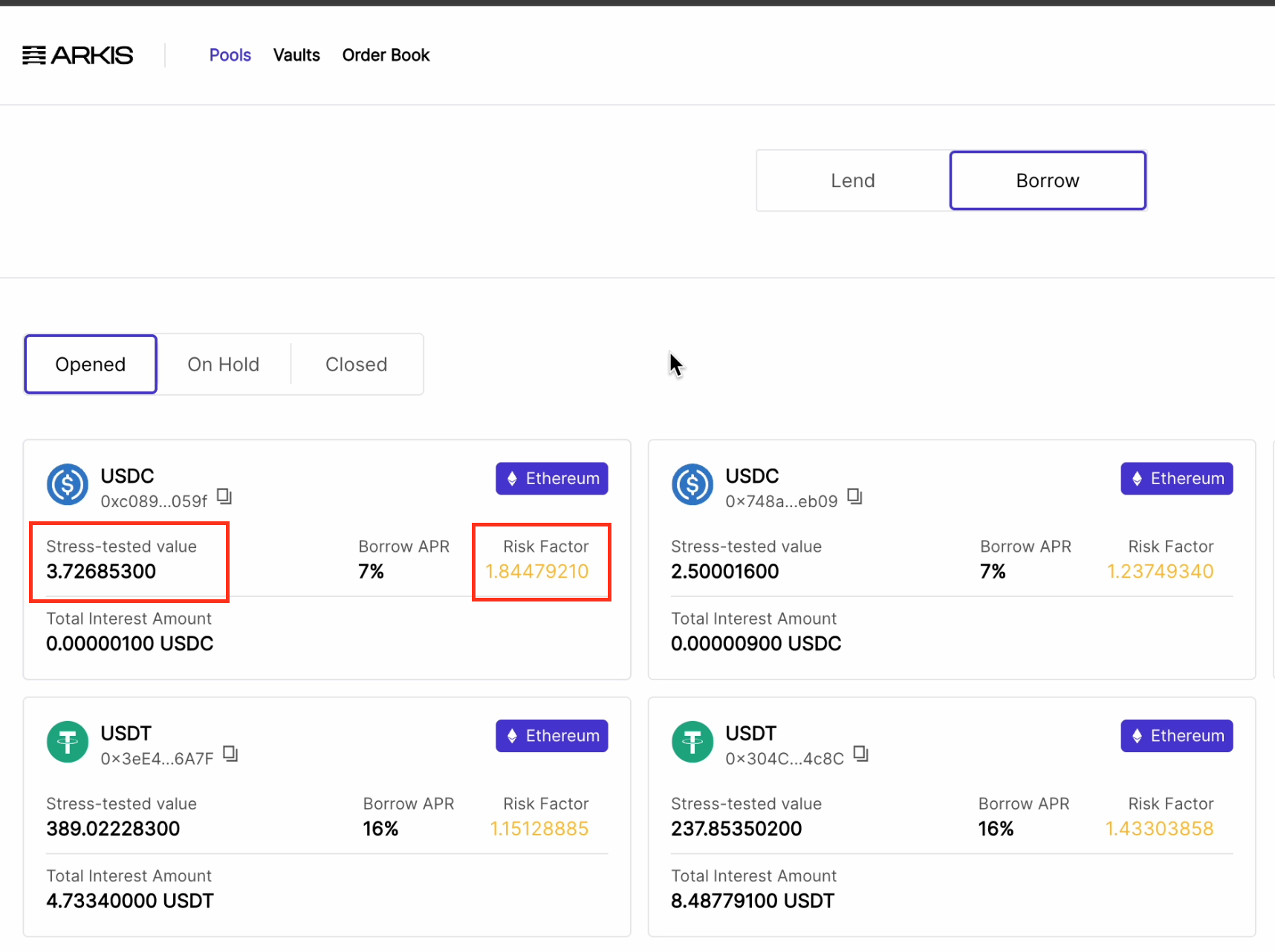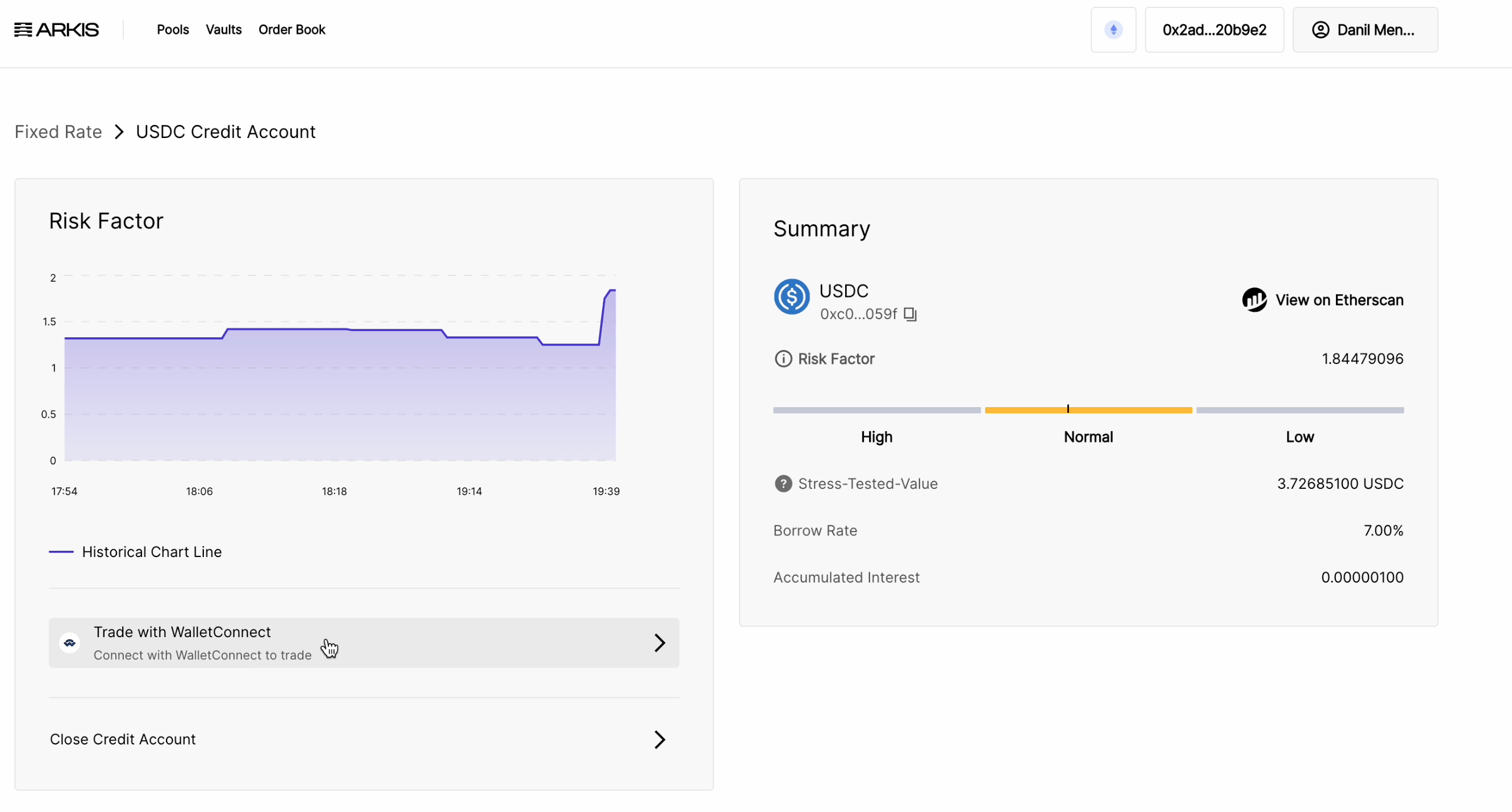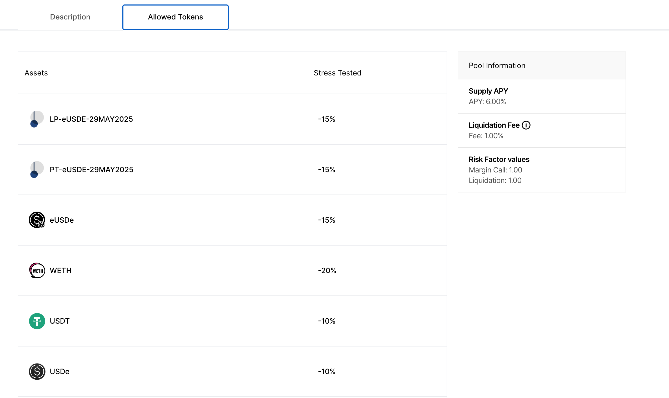 By converting borrowed asset (USDC) into riskier asset (PT eUSDe) Arkis Margin engine repriced portfolio value accordingly to stress-tested values.