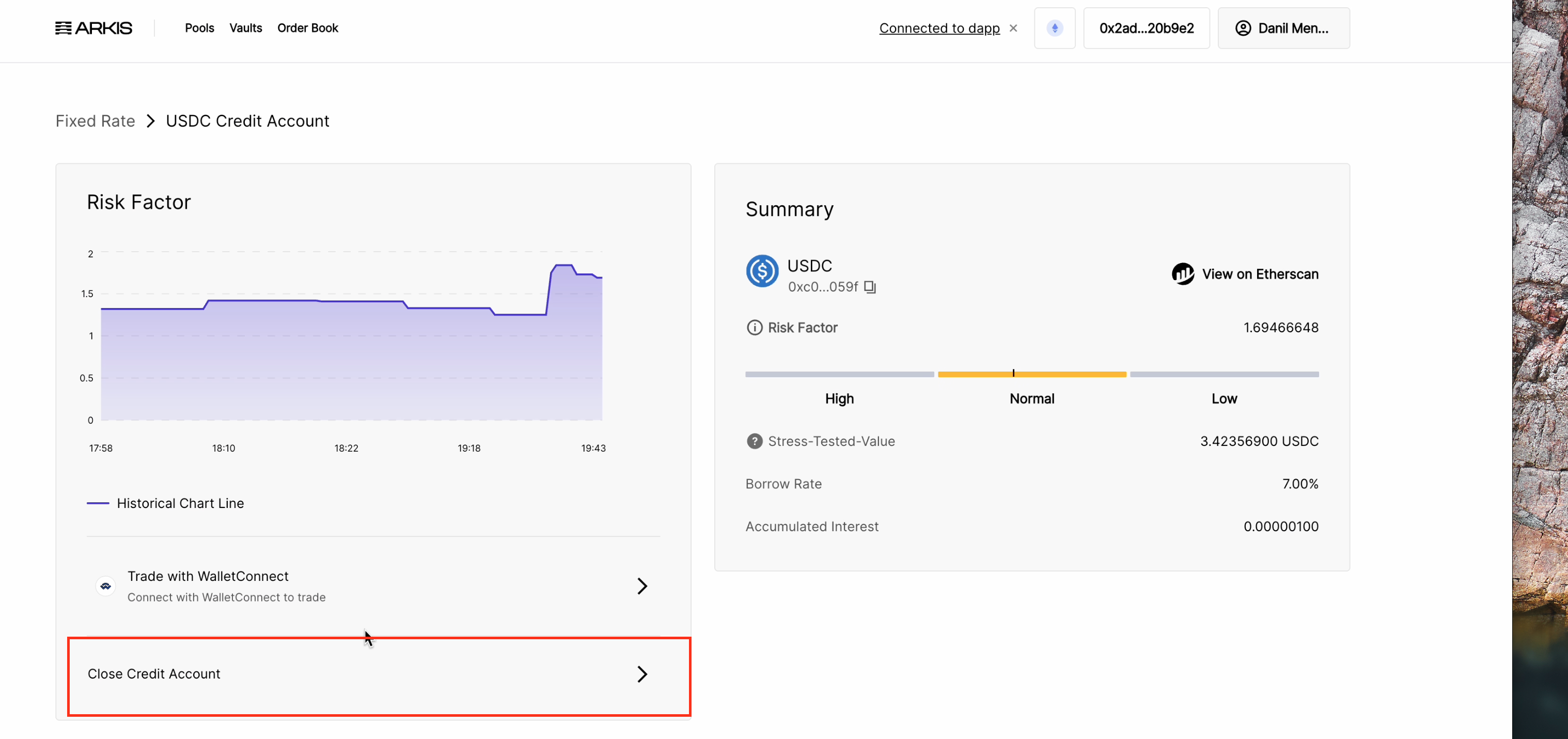 By clicking on Borrow, we start the process of opening a Margin Account and taking the loan from the pool.