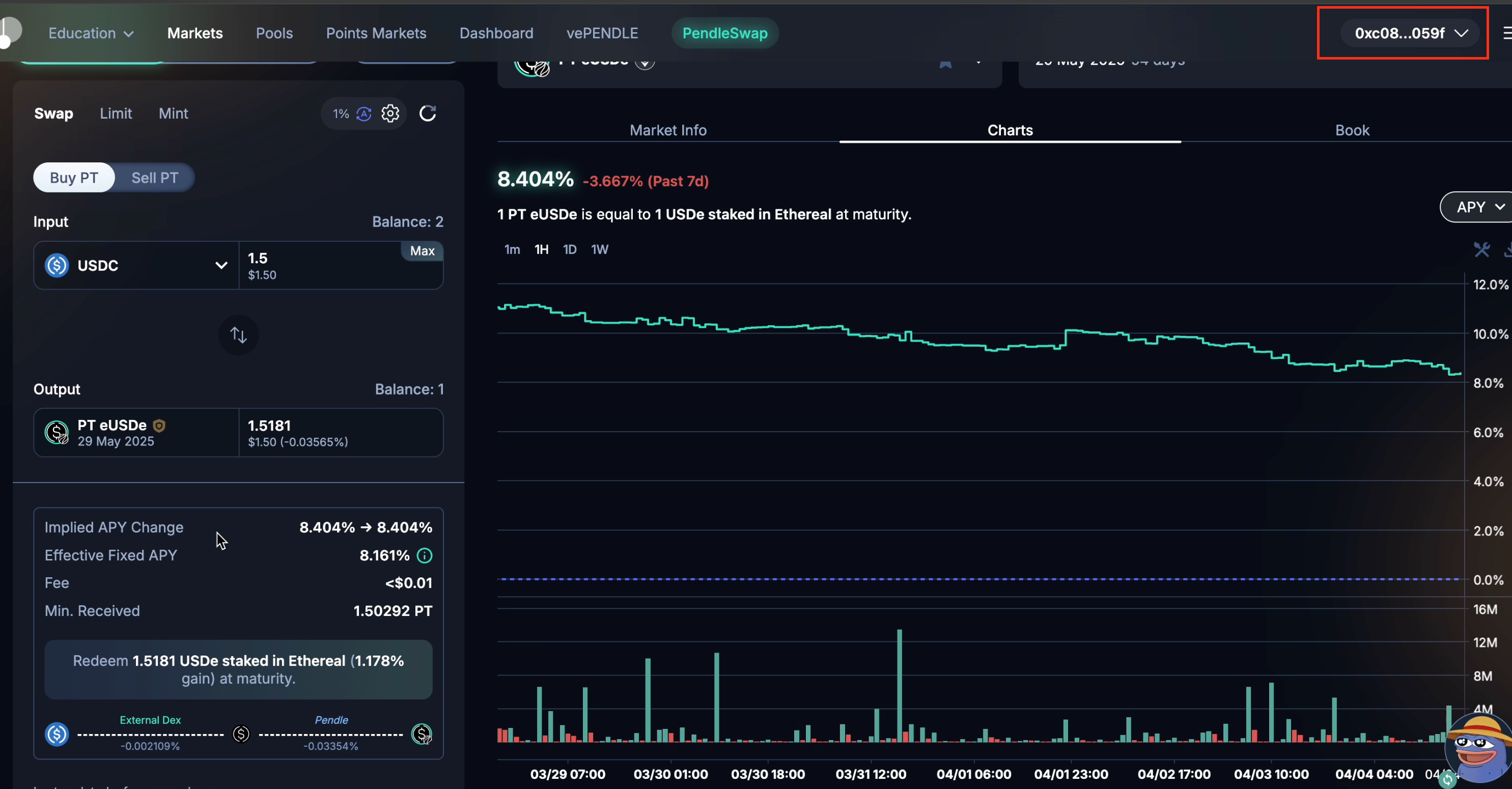 If you go back to Pendle dApp you can see that the connected address is the address of Margin Account.