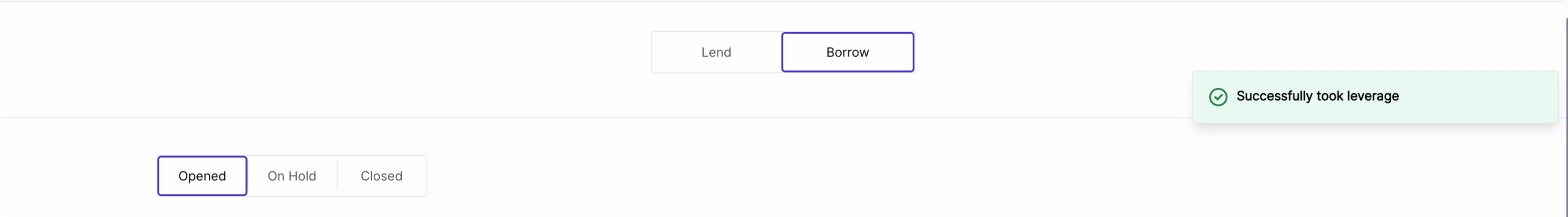 When the transaction is signed, the Asset Manager receives notification that the leverage was taken successfully.