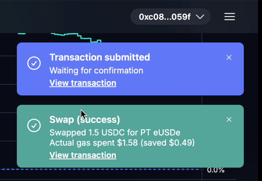 You can use Pendle dashboard or input the Margin Account address into the Etherscan to make sure that all swaps were completed.