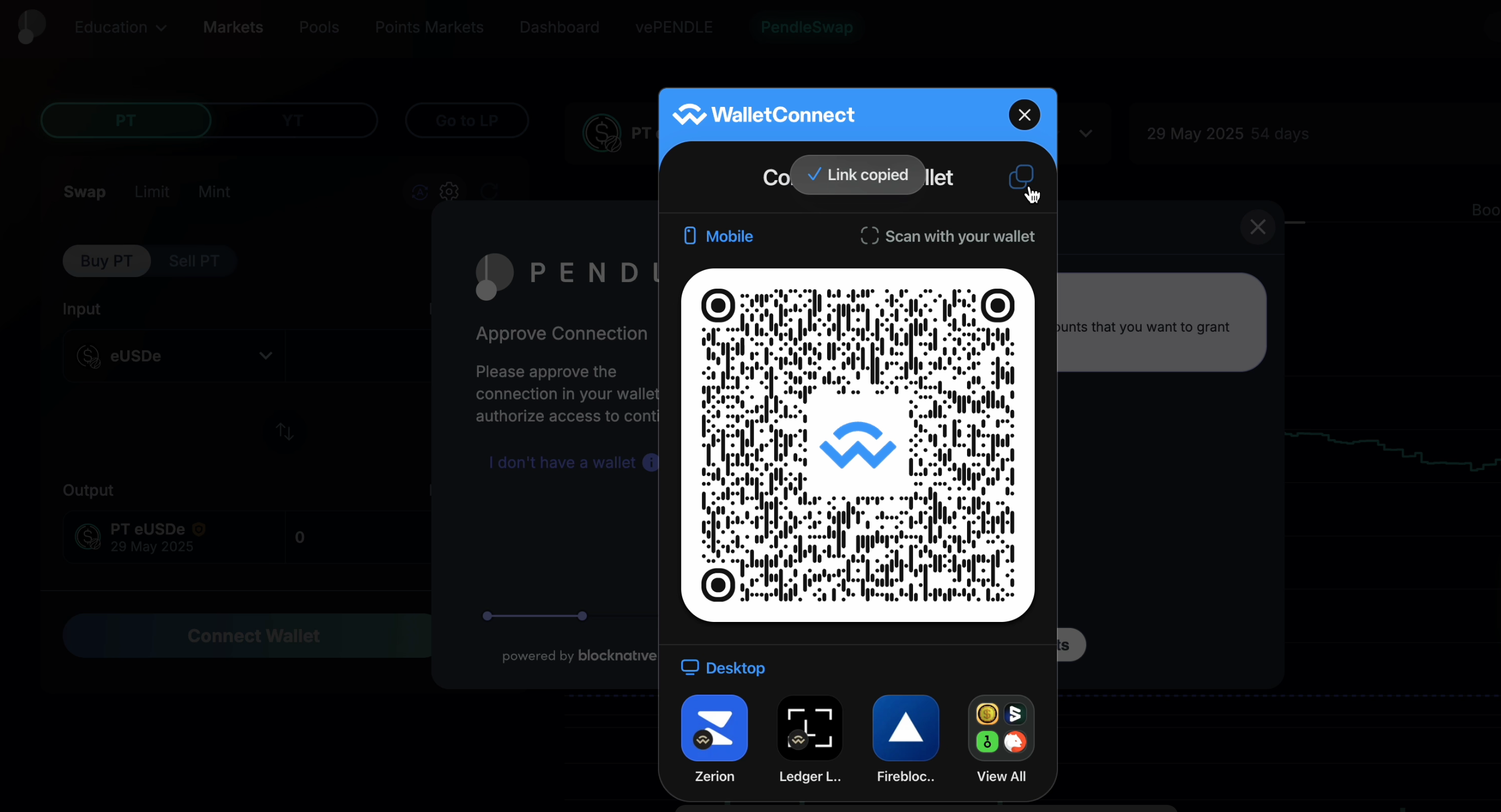 Go back to Pendle and choose Wallet Connect as your connection option and copy the link.